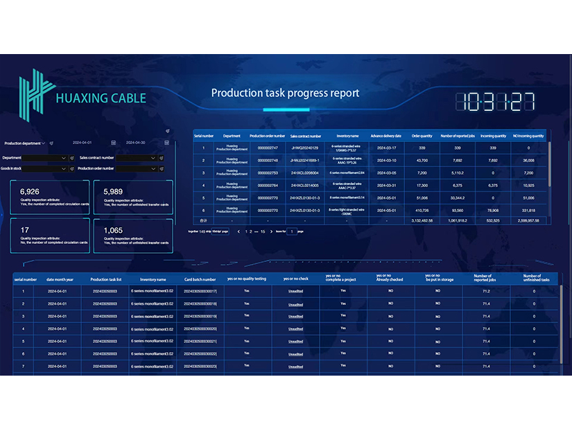 In recent years, focusing on the main line of intelligent transformation and digital transformation, Huaxing Cable has successfully deployed MES(manufacturing execution system) and ERP (enterprise resource planning system) for the production line, and has realized the optimization of key environments such as order driving, planning and scheduling, material invocation, and financial management, and has phased in the realization of "technology empowerment, enterprise intelligence, and product valuation". Focusing on the cable industry, the company will further strengthen the application of the industrial Internet, open up the whole industrial chain and the whole value chain, promote digitalization, networking and intelligence, and optimize the intelligent digital road.
